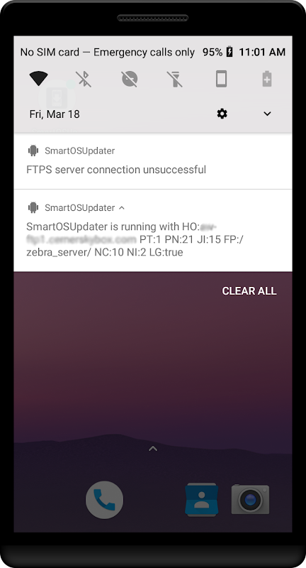 SmartOSUpdater mengemas kini OS peranti, menyambung ke pelayan tertentu.