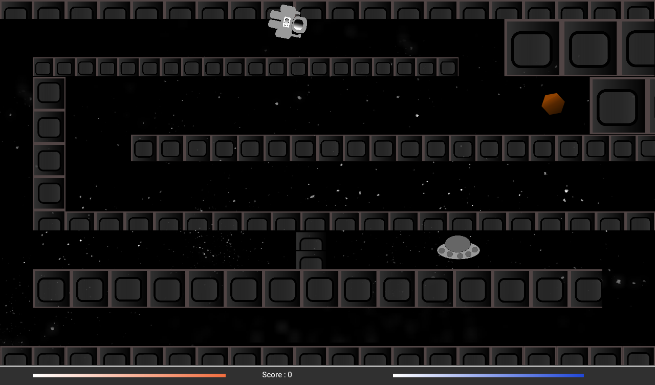 Dalam permainan ini anda seorang angkasawan yang harus kembali ke kapal angkasanya.