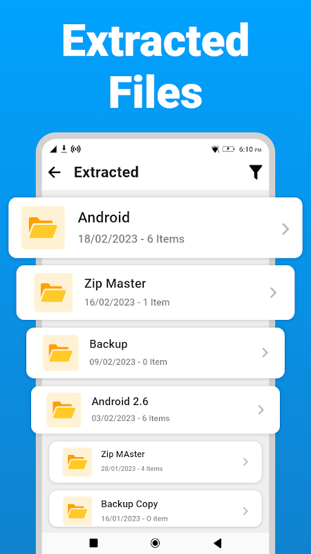 Perlu mengekstrak berbilang fail dengan mudah? Tiada masalah! Pengekstrak Fail Zip untuk Android membolehkan anda memilih sekumpulan fail dan mengekstraknya sekaligus. Pembaca Zip - Pemapar Zip menjimatkan masa anda dan memastikan anda teratur.