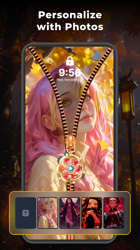 Ubah skrin kunci anda dengan kesan zip. Luncurkan zip untuk membuka kunci telefon anda dengan cara yang lancar dan interaktif sambil menambah sentuhan bergaya pada peranti anda.