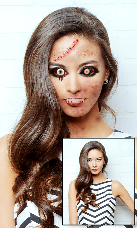 Mempunyai masa yang menyeronokkan dengan memberi muka Zombie yang akan mengubah foto yang diperoleh anda ke dalam menggigit, rintihan, otak-makan, calar, pertumpahan darah, Zombie ganas.