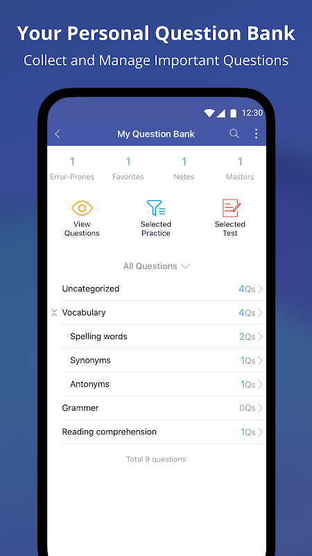 Exams are saved locally on your phone, so you can search exams quickly using keywords. You can also find the exams and questions you recently took.