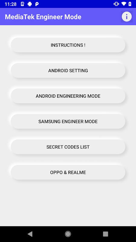 It is very easy to use and accessing is very fast. and get very easy Engineer Mode by this application on your device Which is supported MTK(MediaTek).you can easy to access to engineering Mode by dial *#*#3646633#*#* in the dial pad or search from google.com for example (" secret code of engineer mode of android mobile "). This application has not accessed any information on your mobile phone.