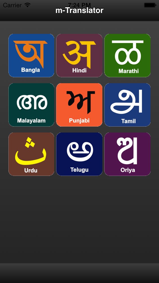 "mTranslator" is a interactive Cross platform application developed in HTML5 which can currently translate English to Nine Indian languages. The application is meant for businessman, tourists and foreigners who want to communicate urgent information to the local Indian people not familiar with English.