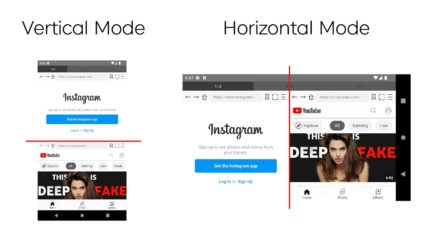 Between 2 browsers (Dual mode), you can control Screen ratio by 90%, 80%, 70%, 60%, 50%.