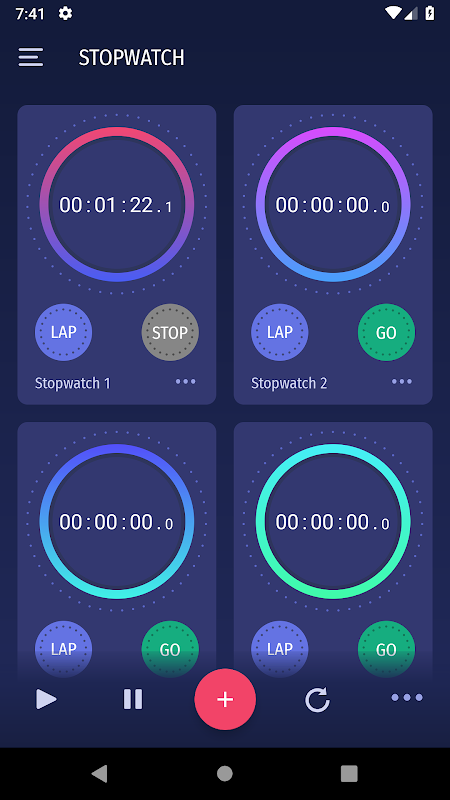 - Create and manage multiple stopwatches independently or altogether