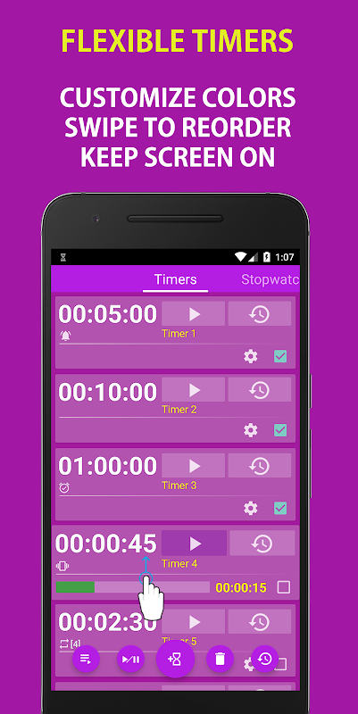 ★ Background support:when you close the app Timers and Stopwatch will continue to run.