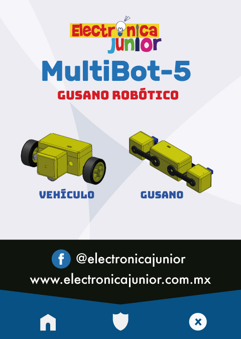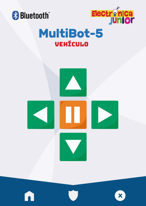 Con esta app, podrás controlar todos los movimientos y funciones del robot MultiBot-5, el cual es capaz de caminar y desplazarse hacia adelante o hacia atrás, así como detenerse, pararse y realizar giros de cada estructura de los extremos.