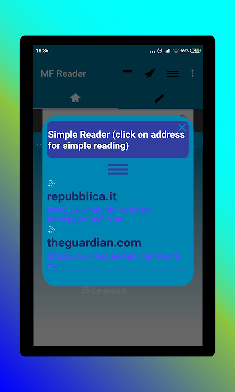 Simple reader ( rss feed), Filter, Search engine, Speech function, Browser!