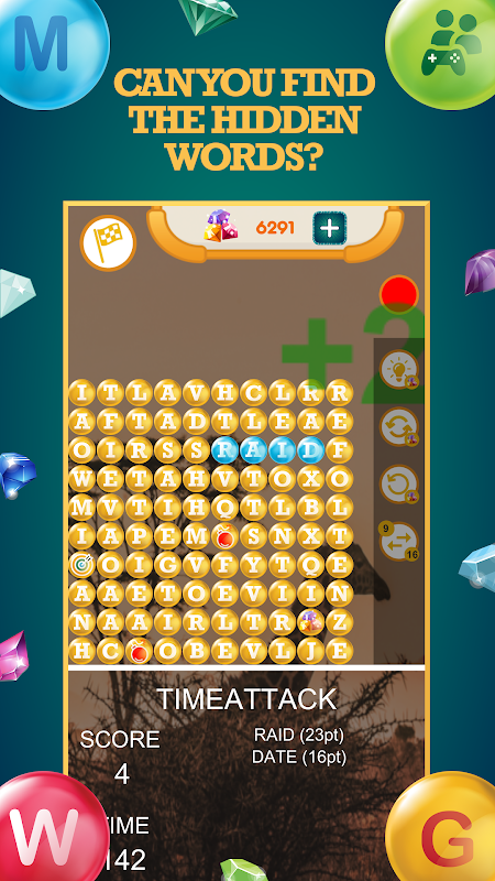 * Time Attack Mode: You need to find as many words as possible in 200 seconds.
