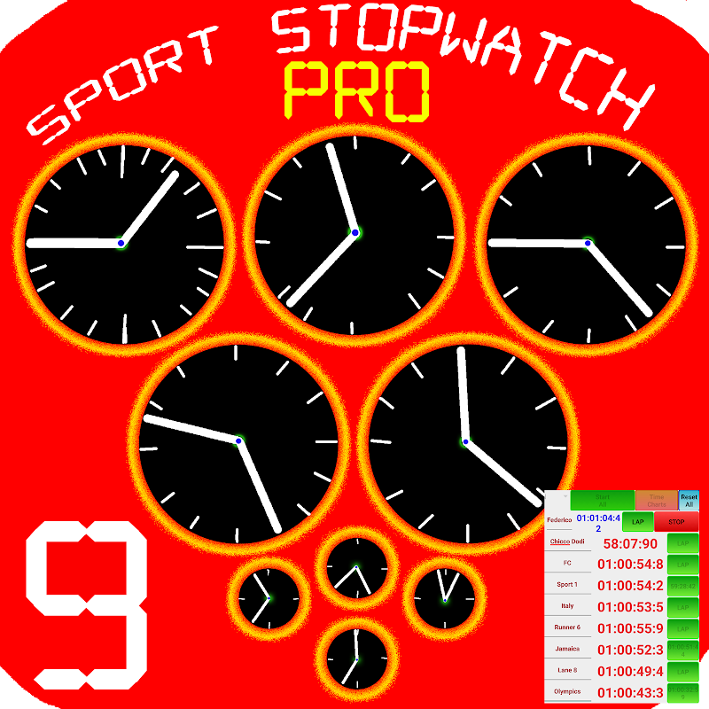Multiple Sport chronometer: 9 stopwatches. Simultaneously (Professional Version)