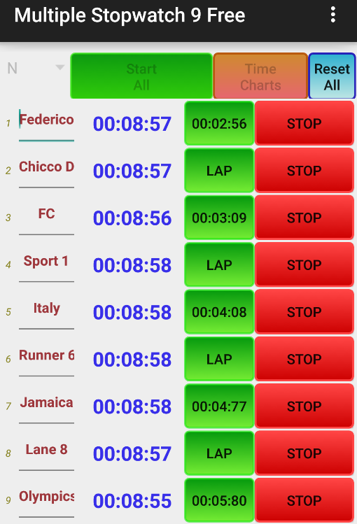- Possibility to choose up to 9 Stopwatches simultaneously