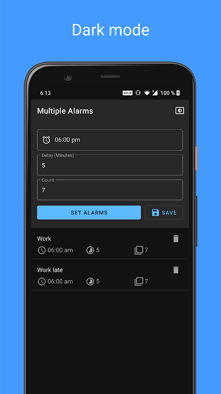Have you ever overslept because of shutting off your alarm instead of putting it on snooze? This is not going to happen anymore with Multiple Alarms!