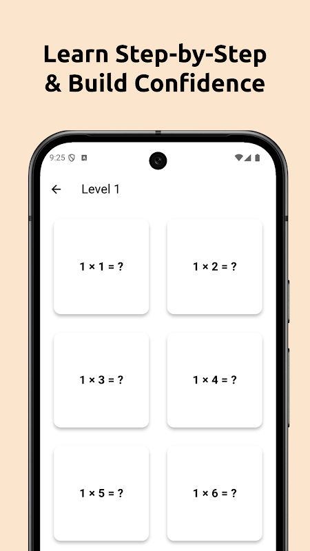 * Practice multiplication from 1 to 9 in a structured and gradual manner. Each level focuses on a specific number, helping you to solidify your understanding step-by-step.