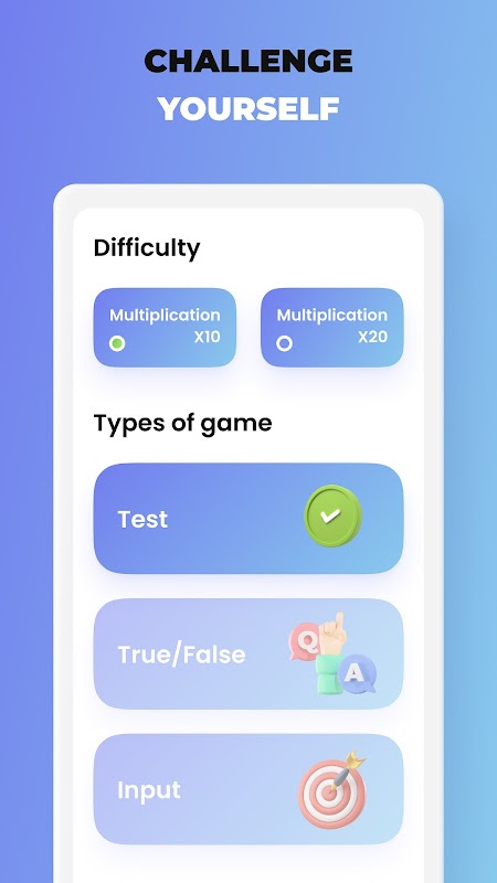 All of the tasks and tests in our game app were created based on scientific research and verified data. It is important to us that you can achieve your goals and learn the multiplication table at any convenient place for you.