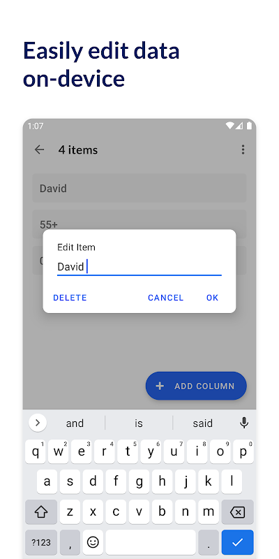 Someone have an incorrect QR Code? No worries, simply edit the data in-app using an easy-to-use and intuitive UI. No need to wait until after!