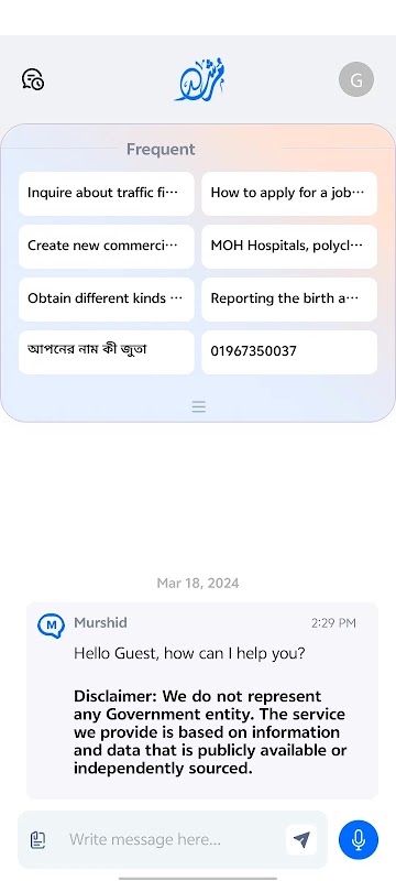 . Generative AI Chatbot: Engage in natural conversations with Murshid to get personalized responses tailored to your inquiries.