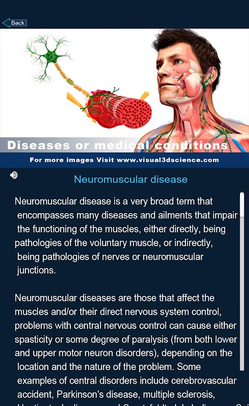 Muscle Anatomy Pro. app for studying Muscle anatomy which allows you to rotate 360° , Zoom and move camera around a highly realistic 3D model.