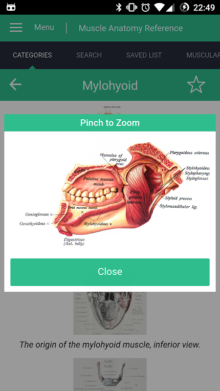 Each muscle article includes various images that when tapped on will show an enlarged version of the image allowing you to take a closer look at the muscle.