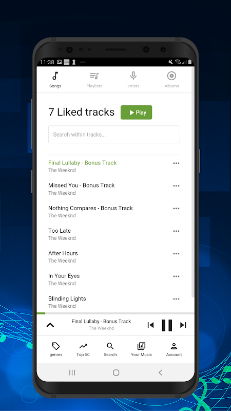 With Music App, you can listen to millions of songs, albums and podcasts for free from all over the world. Categorize songs based on your favorite artists, genres and popular tracks.
