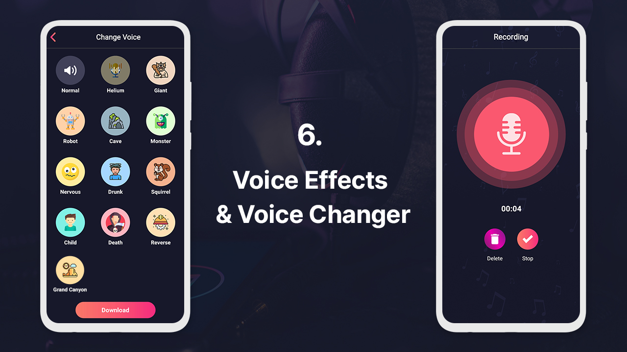 -Voice changer effect supports many Audio effects.