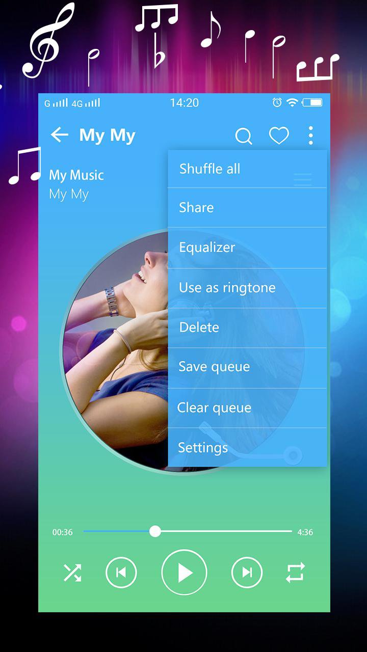This Music Player is not only based on artists or albums, but also through the folders to find the music. Easily guide you to quickly find your phone all the music. You can mix and match colors to your interface more comfortable experience.