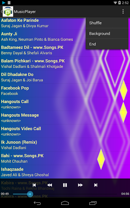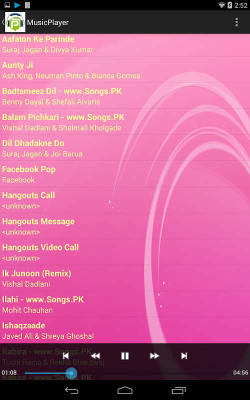 - Music Player app which lets you play all of the songs on your phone.
