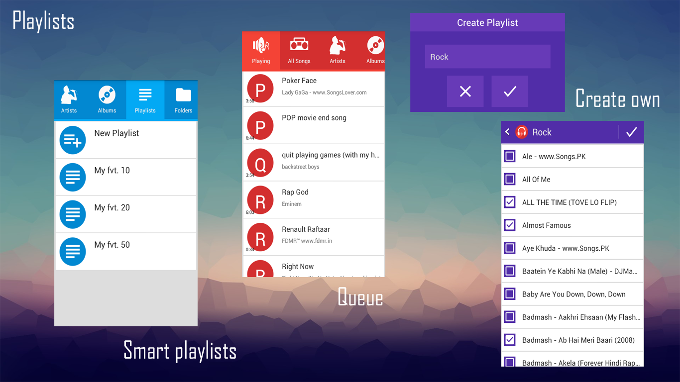 With the Music Player installed in your Android, you carry a Music Powerhouse within your pocket. This Music Player contains so many features that you will never find in any of the other Music Player Apps.