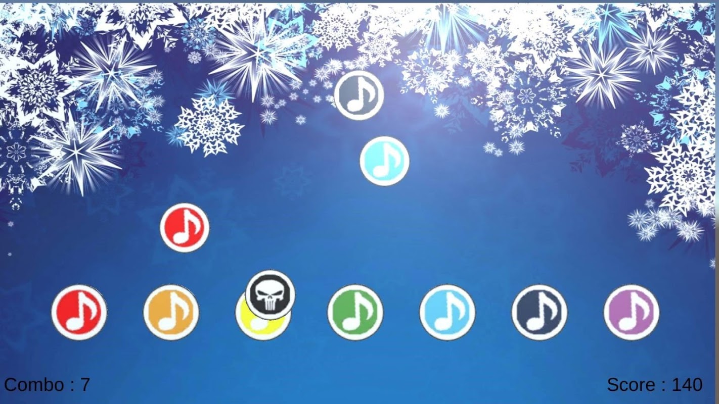 充滿特色的音樂節奏遊戲,鋪列成7個音符,用7種顏色表示每個軌道會出現的音符顏色,3種難度從不同的表現方式可以體驗遊玩,是一款新奇又有趣的音樂遊戲。