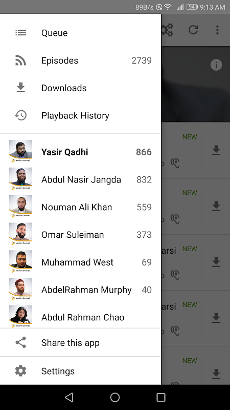 * Access 70,000+ episodes from 200+ Muslim speakers, including Mufti Menk, Yasir Qadhi, and others.