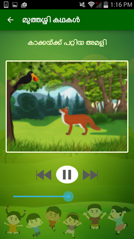 Every children loves stories and if it is told by their loved ones they will be more happy to heed them. Suppose that if the story is in your mother tongue, it will be more interesting. Vcodeinfotech now have presented an innovative idea of telling stories in Malayalam to your younger ones through your mobiles. Like every grandma stories there are many stories in Malayalam language also. All these “MUTHASSIKKADAKAL” include animals, Kings, Queens and various other characters from all walks of life. Balu: in leopard’s story; Ramu: in hat sellers story or the greedy King in the ‘Gold story’ all will surely entertain your children and their friends profusely. The apologues in this app are recited fabulously by a cute voice that will definitely be very attractive to your kids. If you are an NRI it gives a double chance of story- telling and hearing your old grandma stories in your mother tongue. The thought provoking proverbs or pieces of advice at the end of each story will evoke a moral and social consciousness in their little minds. We have no doubt that this app will prove to be an excellent time pass for both the elders and their kids. We have selected these stories from various sources and we welcome your valuable suggestions and comments to make it more perfect in the coming updations.