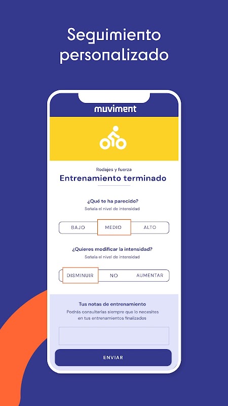Ayuda a mejorar la forma física de tu ciudadanía. muviment facilita el control de la evolución del estado de forma de la persona. Además posibilita la monitorización de los progresos realizados. Un plan personalizado que incluye movilidad (caminar, montar en bicicleta o en máquinas cardio), fuerza (podrás realizarlo en casa o en un gimnasio), estiramientos.