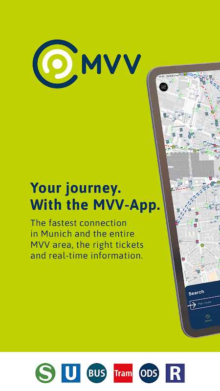 The MVV-App is the cost-free and ad-free app for timetable information and public transport tickets in the entire Munich transport network (Münchner VerkehrsVerbund).