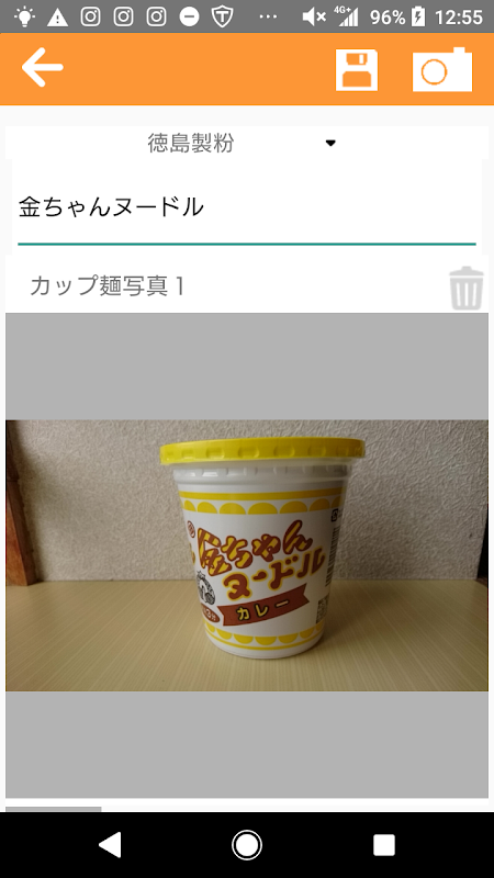 ○カップラーメンのパッケージや具材情報などの写真を撮り商品の情報を登録できます。写真は1商品5枚まで登録できます。