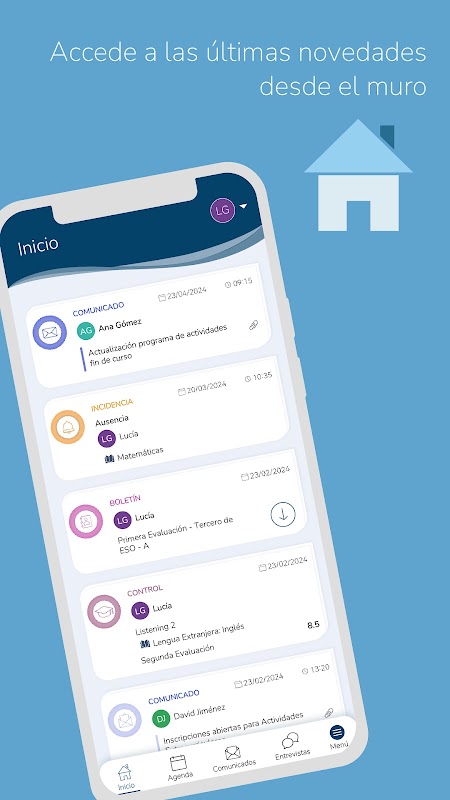 The application offers everything you need to know about your children's day-to-day at school and everything related to their school follow-up: from checking grades or reports, contacting teachers, viewing absences, checking invoices, reviewing the menu, school routes or the regulations and policies of the center.