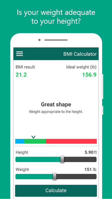With this app you can calculate your Body Mass Index in a simple way to track your weight. The BMI calculator is ideal to lose weight because thanks to the history that incorporates you can make an exhaustive monitoring of your progress and evolution.
