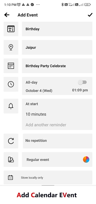 Personalized Event Categories: Organize your events by creating custom categories and color codes. Categorize your activities as work, personal, fitness, or anything else that suits your lifestyle.