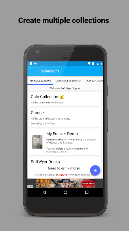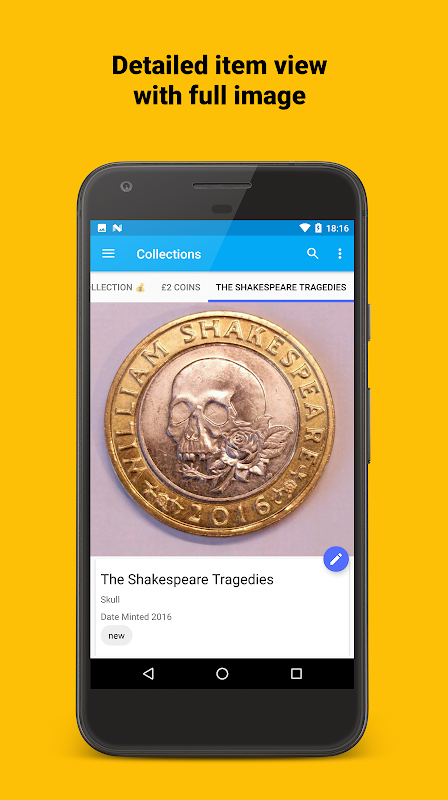 * Create collections with any level of containers (e.g. coin value, stamp country) and items (e.g. coins, stamps, bottle tops)