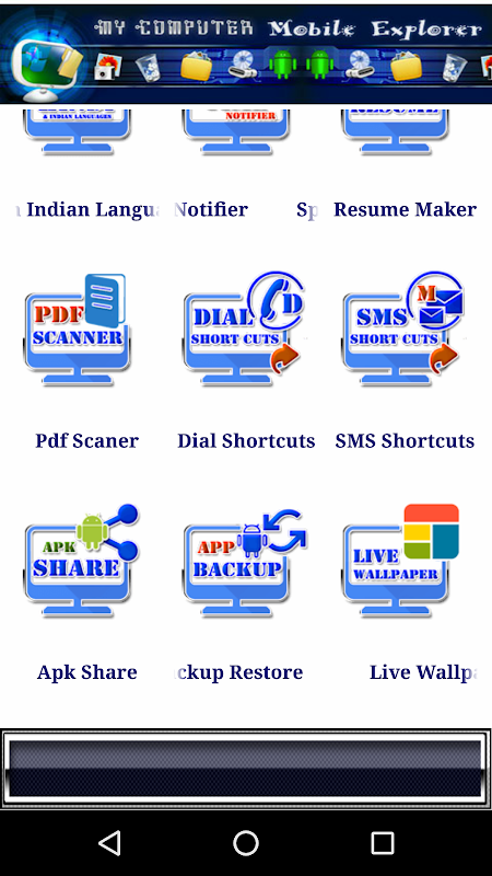 My Computer Theme Mobile File Explorer for your Mobiles.It's amazing feature like browse, cut, copy, paste, delete, send files.The File manger while browsing feels like your computer file explorer.You have an option for application manager and you can launch from this explorer,app search feature is there and also one touch to take all apps backup to the mobile.