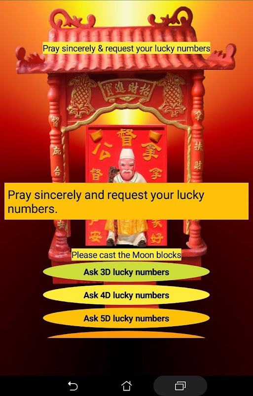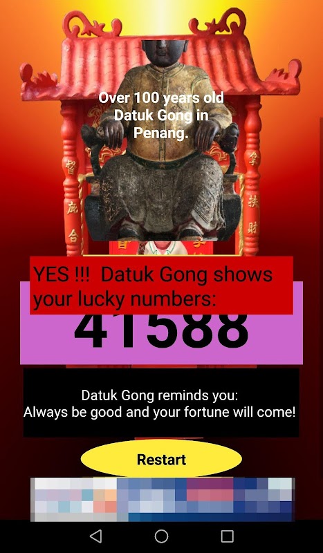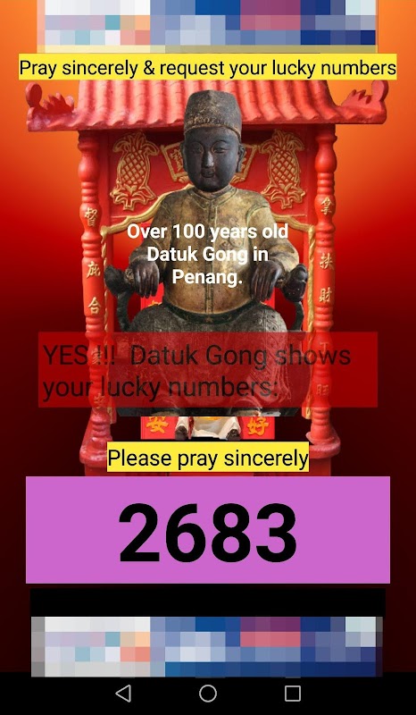 This app is for you to request your lucky numbers and lucky Chinese Zodiac from Datuk Gong. It is easy to use.