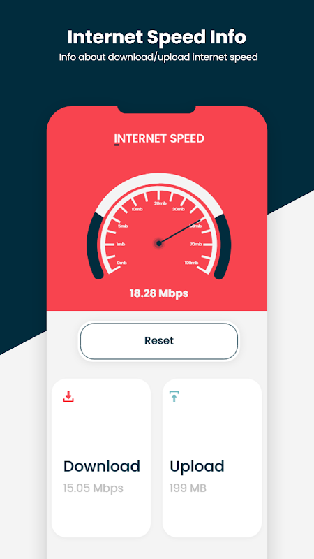 - Internet Speed – The Android Phone App tells you the location of the internet connection along with the speed stats i.e. down speed and up speed.