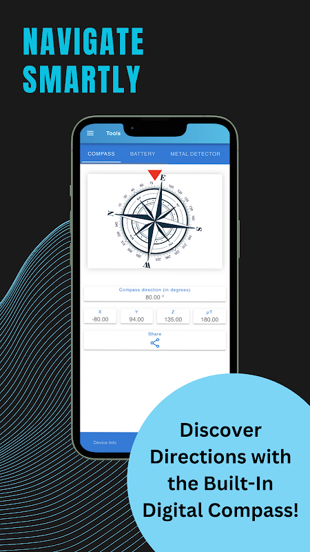 ✔️Digital Compass with multiple settings
