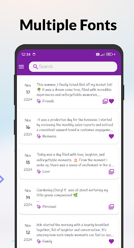 - 🖋️ Diary with Multiple Font Support: Personalize your diary notes with a wide selection of fonts for a unique diary writing experience.