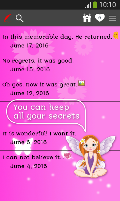 Your daily notes, secrets, photos, themes and more safe in the diary on password