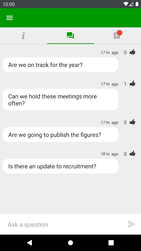 - Q&A board with ‘like’ upvoting