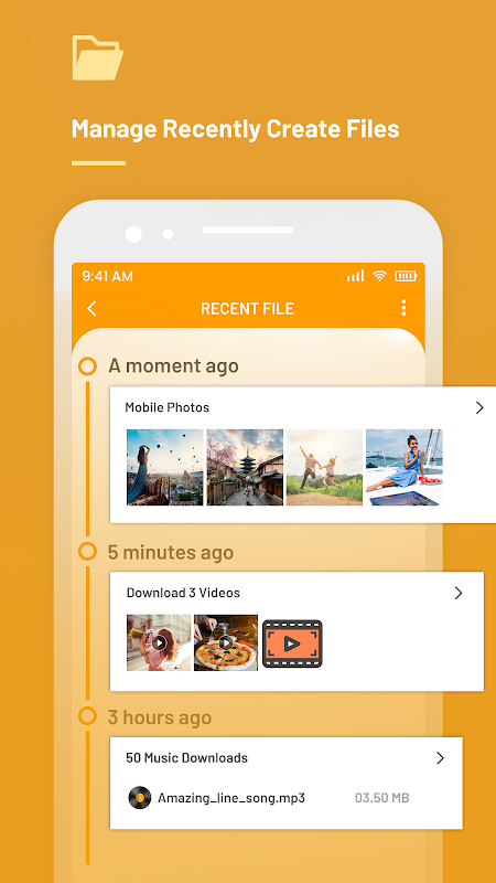 ✔ Types of files, including downloaded, document, image, audio, video, and installation files (.APK)