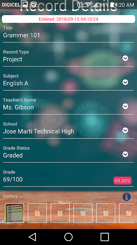 3. Record an entry for a particular work by easily selecting record type, subject, teacher, school and grade status from filterable modal lists.