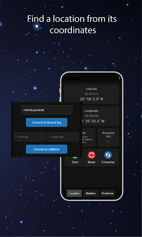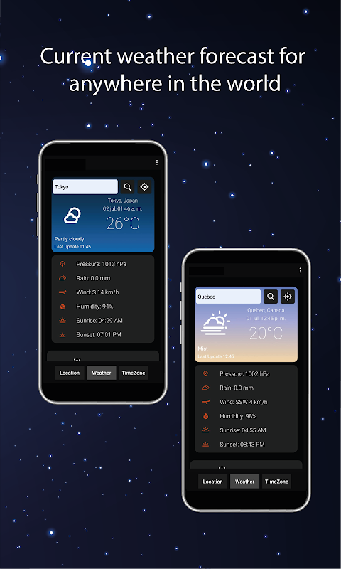 Get accurate geographic and meteorological information with just one touch. Whether you need exact coordinates for your next hike, a weather forecast to plan your trip, or the exact time anywhere on the planet, this app has it all.