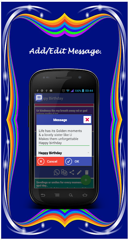 In the message list you can directly send message onSocial app and Also copy message, Share on Social media , Edit that message and delete/remove that message.