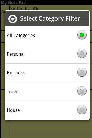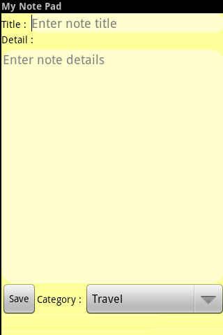 My Note Pad is an intuitive notepad application that allows you to capture and organize your thoughts on-the-go. The main notepad screen gives you a note pad look-and-feel, allowing you to view selected categories, or sort the notes by title, date created or date last modified.